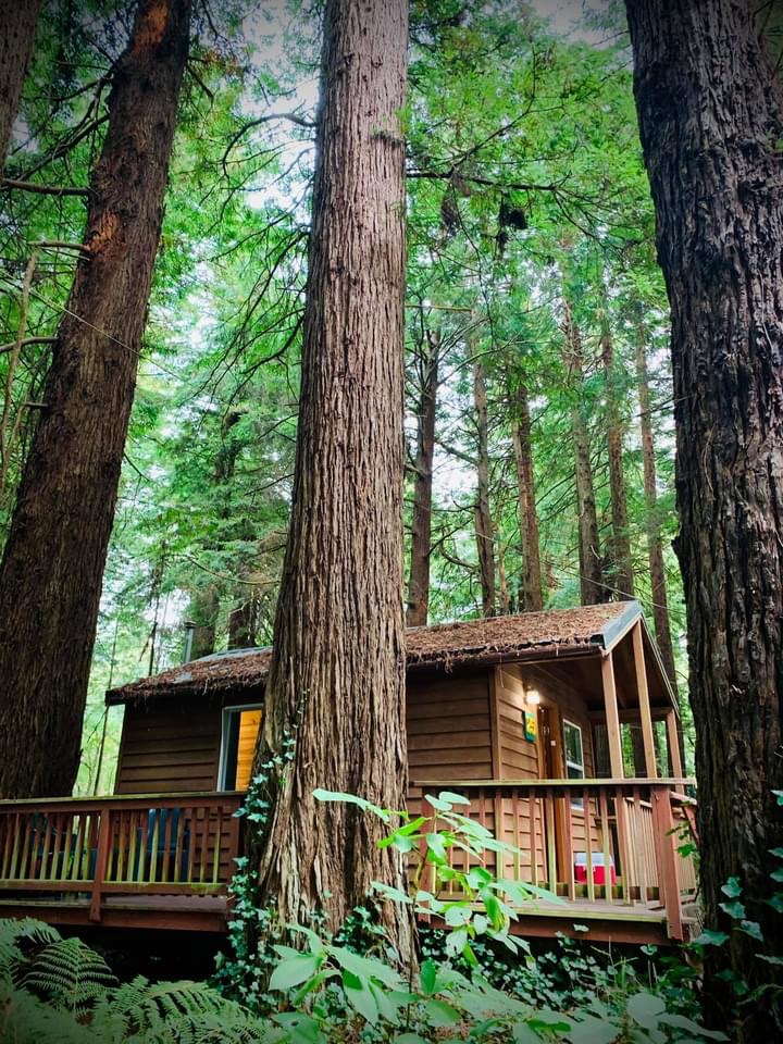 We started on Highway 101 at the Oregon border and drove directly south to Trinidad for our first night. We had stayed at the Emerald Forest Cabins a few years ago and loved it, and it was just as lovable this time, if a bit more crowded. There are a lot of cabins but they are scattered among the redwoods so it feels more secluded than it really is. Very naturey. Foresty.