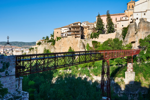 We chose to cross the gorge down at the bottom, as God intended, and then climb back up on the other side. Perfectly fine. The Centro Historico is long and narrow; it follows the hillside as it rises toward a peak. As we discovered in Northern Spain, there is a somber aspect to a lot of old cities here. Building interiors are dark, public spaces often small. A large population of seniors and bored teenagers, but people were friendly and welcoming. It’s really an inviting downtown area because it’s compact and there is a view of the gorge from practically every corner. We didn’t visit the famous Hanging Houses (Casas Colgadas), but you get the general idea from the name.