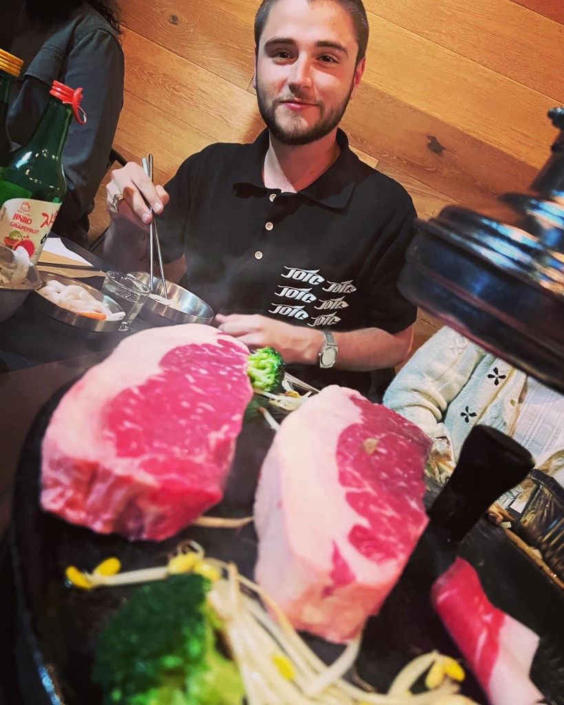 We met Carlos and girlfriend, Cienna, for dinner at Let’s Meat, Korean BBQ on Fifth Ave. It’s far too popular so we put our names on a list and then wandered for a couple of hours, until they sent an alarming text saying we had 5 minutes to get our asses back there. The food was fantastic and it’s all you can eat in 90 minutes. No wonder it’s so popular. That area is now referred to as Koreatown, I don’t know what it was called in the 1980’s when I worked briefly at 40th St/ Fifth.