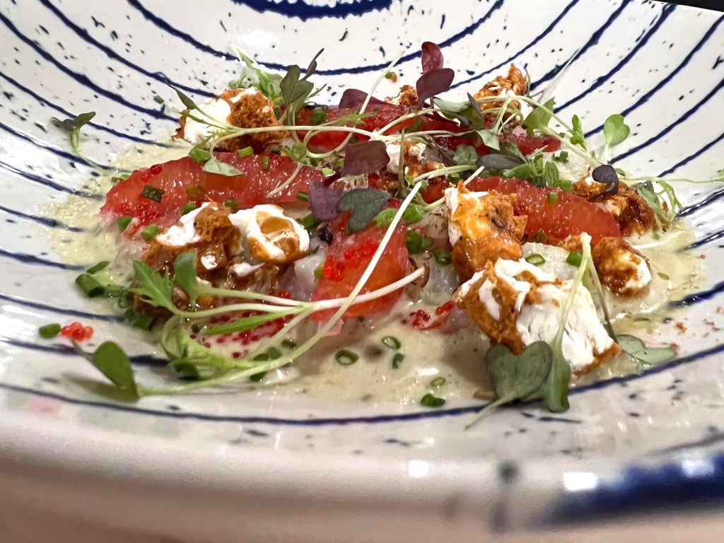Throughout this week, we had some great local food and then Hector and I, on our final night, treated ourselves to dinner at Pujol, which was named as Mexico City’s best restaurant, so we were lucky to reserve a table (months in advance) for dinner at 6pm. The signature dish is mole, a very traditional dark sauce. Here, as part of a tasting menu, two types are served simply on a plate with tortillas. The rest of the evening consisted of one priceless gem after another, served by a choreographed array of super models and future movie stars. The room was gorgeous, the cocktails were nectar, food ambrosia. (Check astronomical)